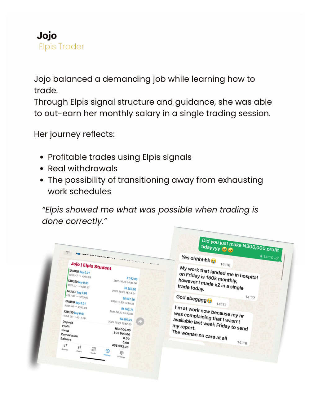 I paid with time.Three years ago, I entered the financial markets , not just to trade, but to understand how real, repeatable income is actually built.Since then, I’ve built and led a team of high-level traders, mentored over 3,000+ students worldwide, and helped create multiple six- and seven-figure earners through trading, investing, and digital sales.Most people fail in trading and digital sales not because they lack effort but because they lack structure, guidance, and execution discipline.Elpis was built to solve that.No hype.